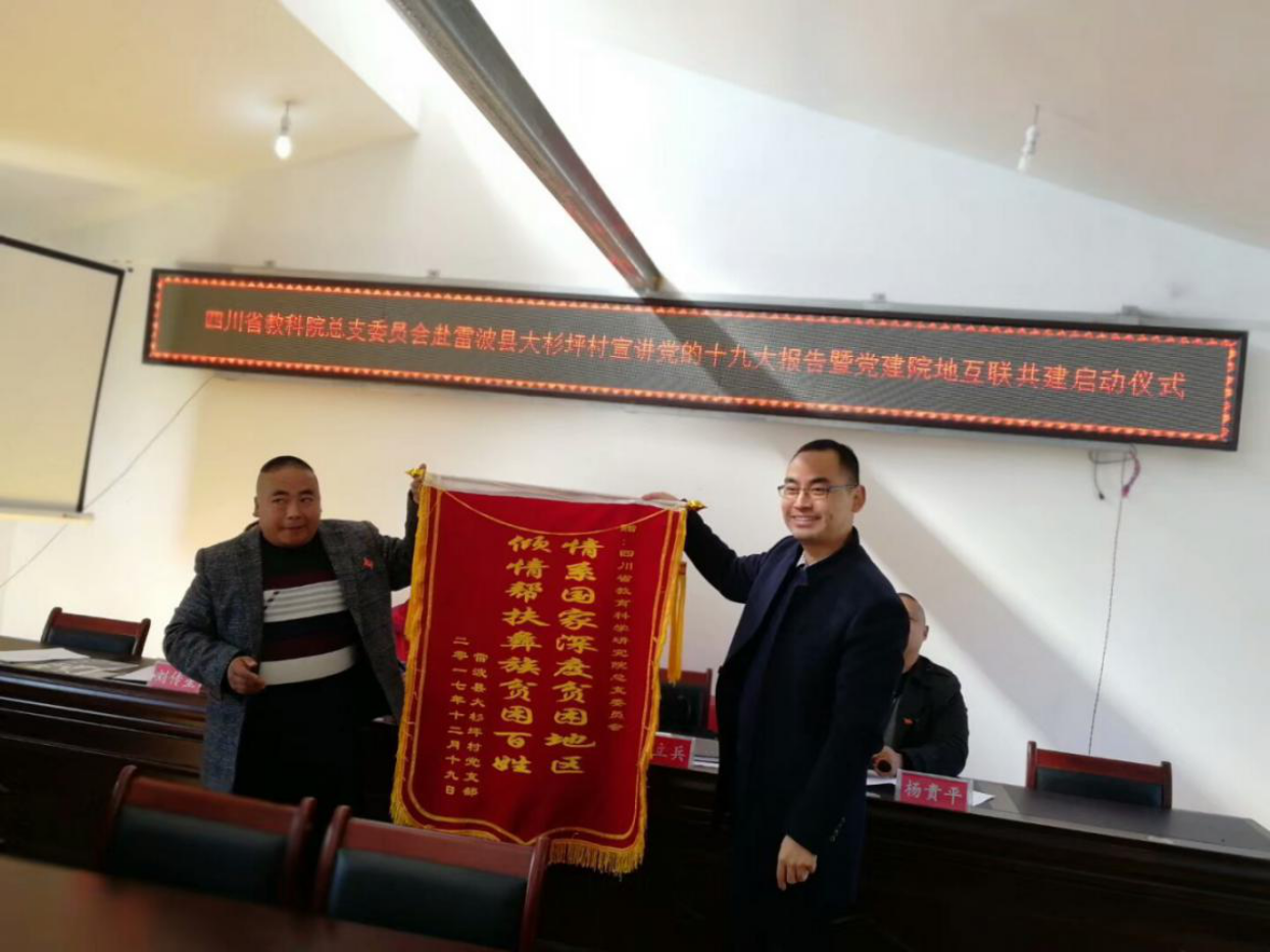 2017年12月18—19日,省教科院党总支率各党支部书记、部分党员代表一行11人在陈立兵副院长的带领下深入对口帮扶雷波县大杉坪村宣讲十九大精神,开展党建院地互联共建和帮扶慰问。