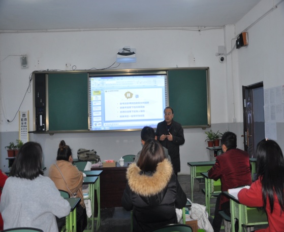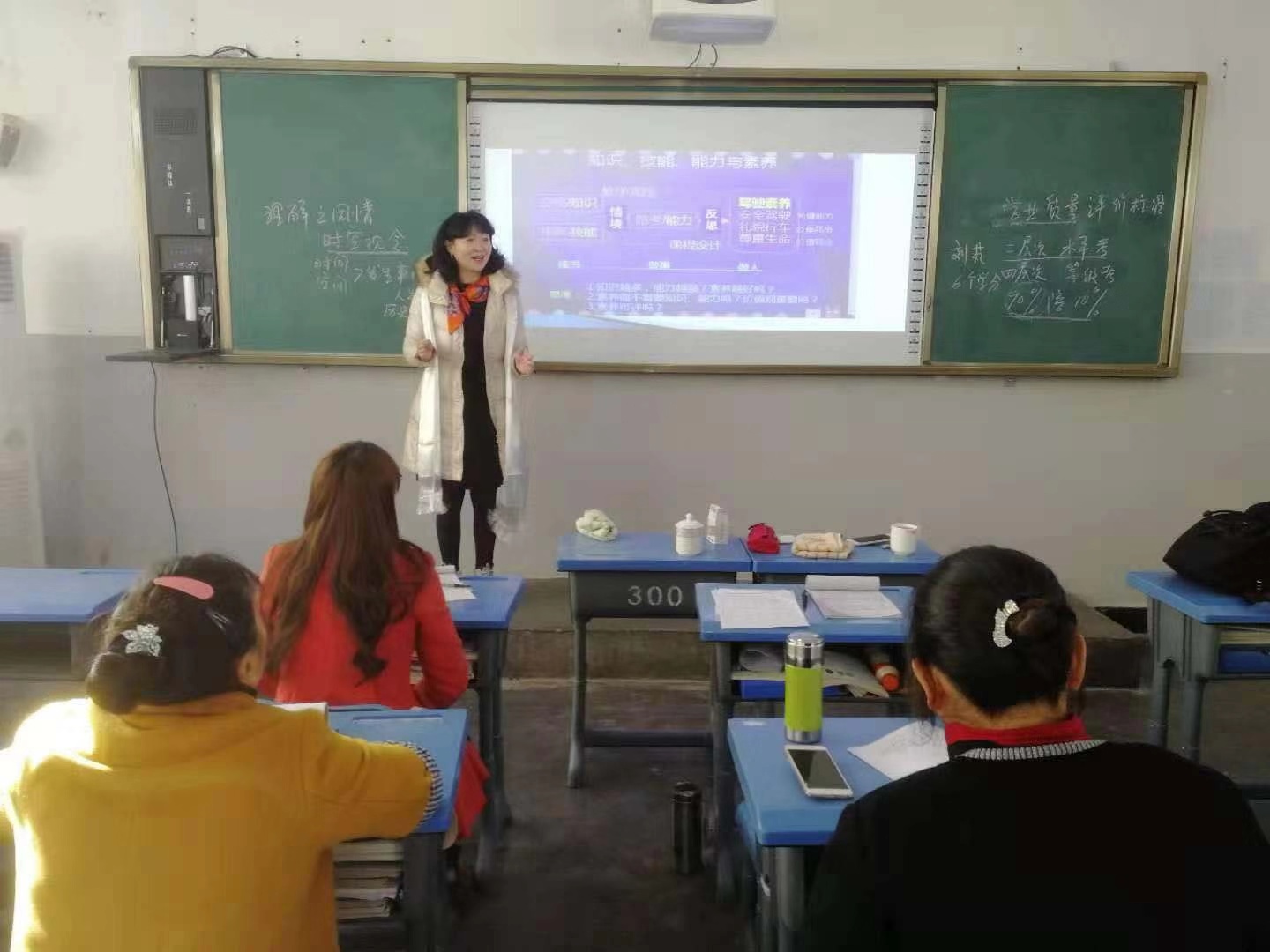 物理教研员宋怀彬老师阐述了高中物理学科核心素养结构(物理观念、科学思维、科学探究、科学态度与责任)、物理学科核心素养与三维目标比较、物理学科核心素养在高考中的体现,分析核心素养在物理教学中的应用;并通过实例讲述如何培养学生的物理学科核心素养;强调知识是载体,不是目标,强调正确获取知识的科学方法和科学思维,培养学生终身学习及社会责任精神。宋老师还就抓好团队建设,制定教研组制度等和老师们进行了交流。