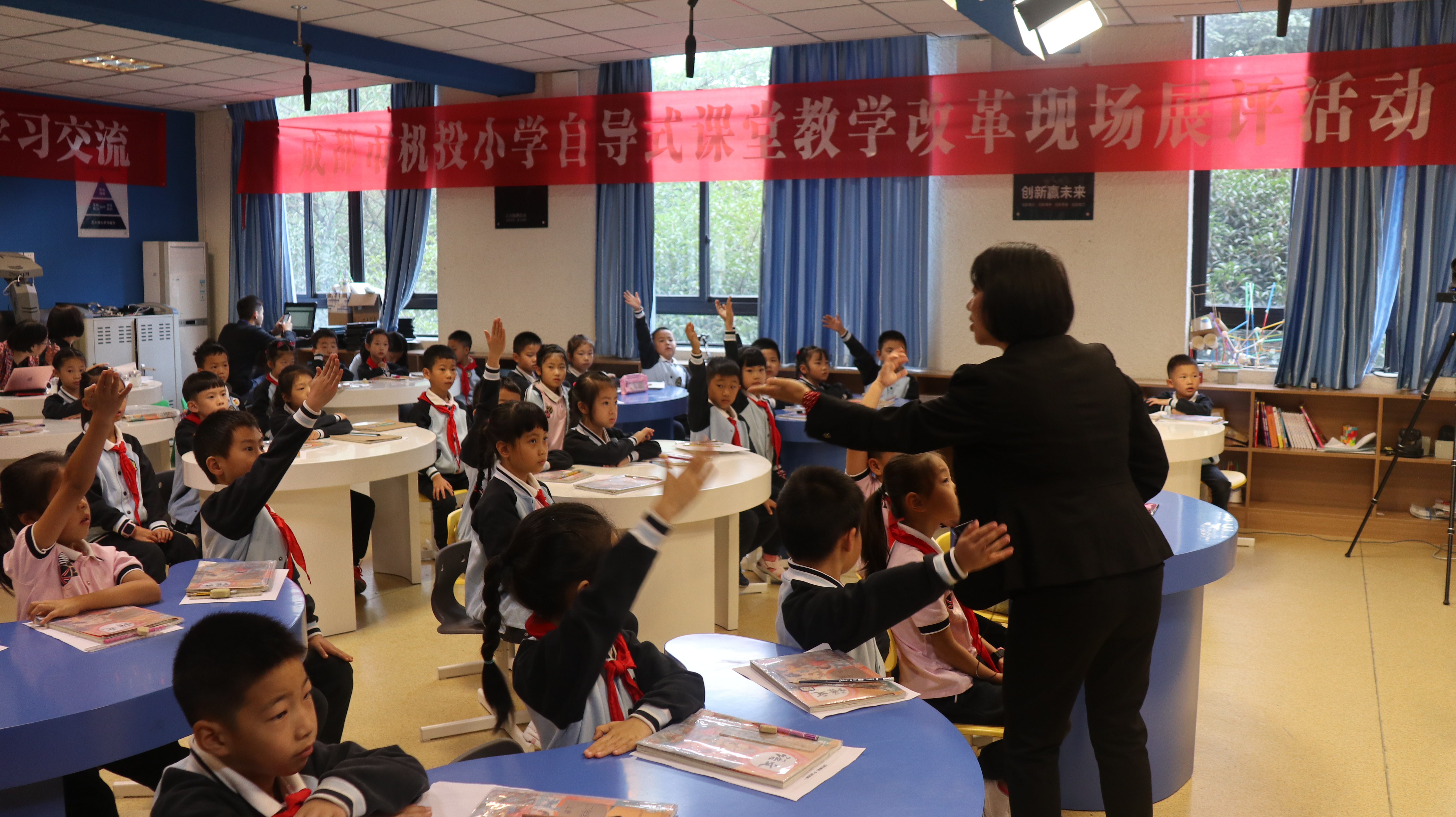 随后,机投小学张屹校长详细介绍了学校对自导式教学理念的认识,推进自导式教学改革研究的整体思路及取得的成效。杨彩红老师、罗玉老师分别从教学实践的角度结合语文、数学学科的特点,汇报了课例研究思路和实践经验。