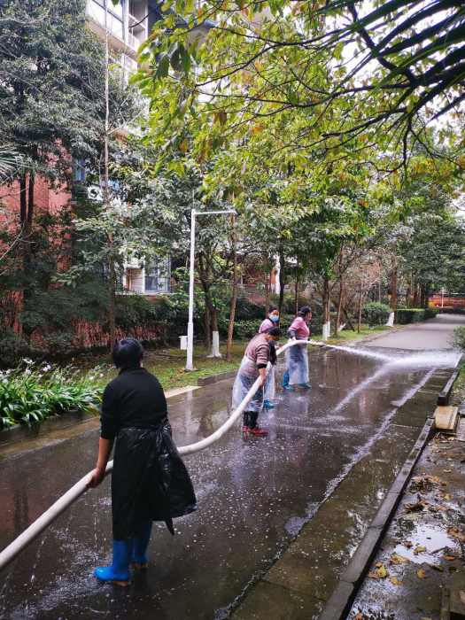 为认真贯彻落实省委办公厅、省人民政府办公厅《四川省爱国卫生运动“周末卫生大扫除”活动方案》精神,按照上级部门通知要求和院领导的指示, 3月14日财资办积极组织物管及本部门人员对小区公共区域开展以环境卫生整治、垃圾污水处理、消除病媒生物孳生为重点的大扫除活动。