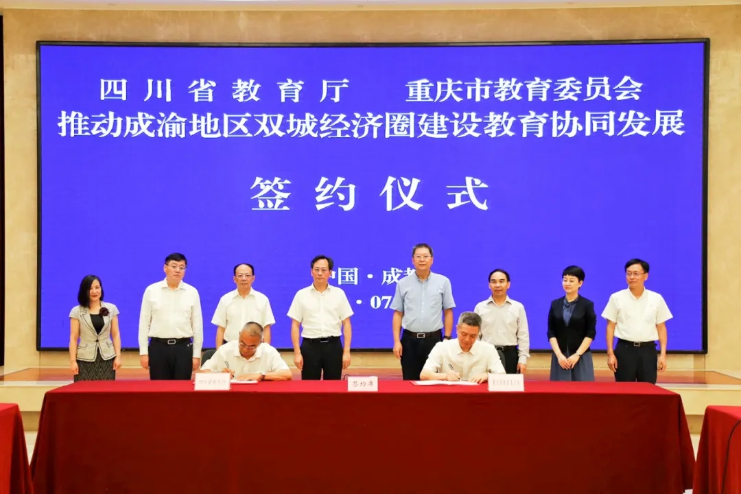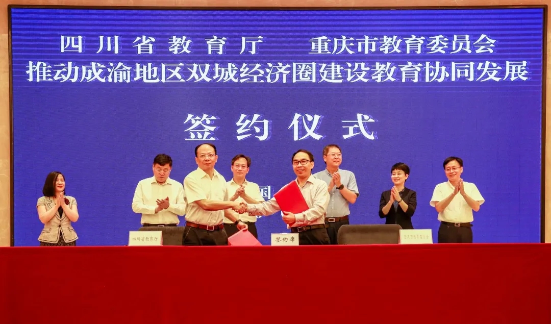 7月1日,四川省教育厅与重庆市教育委员会推动成渝地区双城经济圈建设教育协同发展工作联席会议第二次会议暨签约仪式在蓉举行。中共四川省委教育工委书记,四川省教育厅党组书记、厅长李江;中共重庆市委教育工委书记,重庆市教育委员会主任黄政等领导出席会议并见证签约仪式。