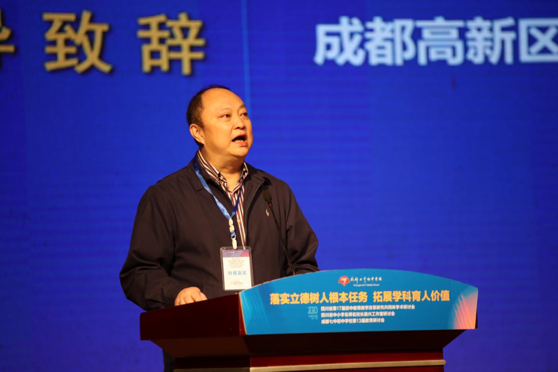 四川省教育科学研究院党总支书记、院长刘涛,成都高新区教育文化和卫生健康局局长彭涌,中国教育学会中小学德育研究分会副秘书长王磊,教育部《道德与法治》统编教材分册主编吴蓉,成都市教育学会会长王志坚,四川师范大学教授刘永康、李华平,成都大学教授陈明华等20余位专家学者、领导嘉宾出席开幕式。开幕式由《教育科学论坛》崔勇主编主持,成都七中初中学校李笑非校长致辞,彭涌局长发表讲话。