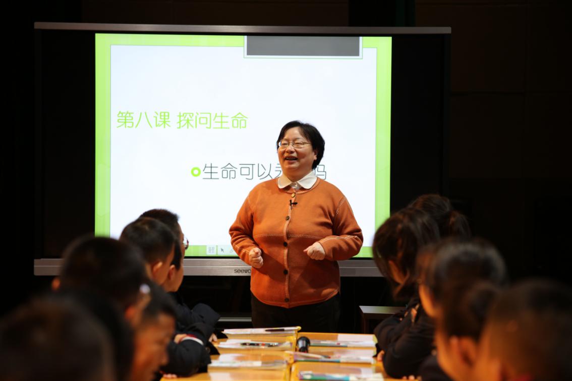 在中国教育学会中小学德育研究分会副秘书长王磊的主持下,成都七中初中学校姜肖老师、教育部《道德与法治》统编教材分册主编吴蓉老师分别带来题为《友谊的天空》《生命可以永恒吗》的示范研讨课,四川省教科院卢志老师作精彩点评。随后,吴蓉老师作了《构建生态育人观――德育和心育融合的思考与探索》专题讲座。