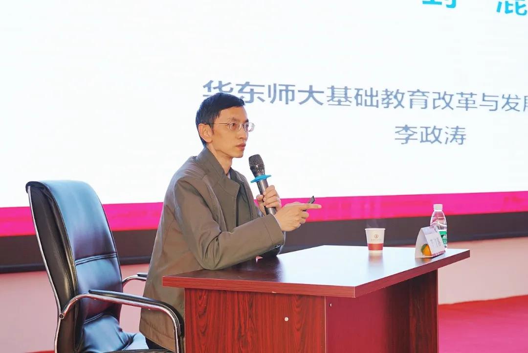 教育部长江学者特聘教授、华东师大基础教育改革与发展研究所所长李政涛作了题为《从“在线教学”到“混融教学”》的报告。他认为后疫情时代,教师必须具备足够的教学能力以胜任“在线教学”和“双线教学”,从数字胜任力、在线教学胜任力、混合教学胜任力深入到“双线混融教学胜任力”,从而使学生走向在线深度学习。