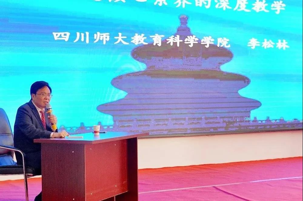 四川师范大学教育科学学院院长李松林教授作了《通达核心素养的深度教学》专题讲座。他认为深度教学是当前课堂改进的实质及方向,学科核心素养的发展取决于学科学习深度的提升,而问题解决学习则是深度学习的基本模式,通过习题式学习、课题式学习和项目式学习,让学生更有深度地学习知识,从而深度建构学生的高阶思维。