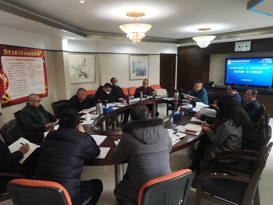 2021年1月20日上午,四川省教育科学研究院召开“2021年度首次‘一对一’精准帮扶昭觉县四开片区第一次工作推进会”。会议由省教科院党总支书记、院长刘涛主持,曾宁波副院长、董洪丹副院长、陈立兵副院长和12个有帮扶任务的所(室)负责人参加。
