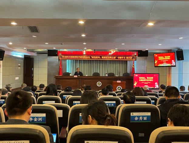 2021年4月7日,中共四川省教育科学研究院总支开展“因党而兴,筑坚定信仰之基”专题学习活动,院党总支委员、普通高中研究所所长吴中林领学,全体教职员工参会。会议由院党总支委员,副院长陈立兵主持。