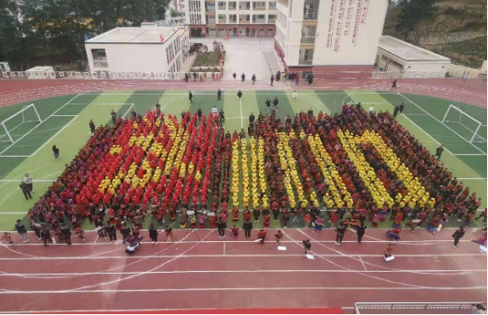 活动伊始,大坝乡中心小学校全体师生随着《没有共产党就没有新中国》的歌声整齐而有序地跑人田径场,通过不同服饰展示了“中国共产党党旗”和“100字样”队形,代表着大坝乡中心小学校的学子们用自己的歌声和行动向中国共产党建党100周年献上自己的祝福。将思政教育和红色教育融入体育活动和体艺学科教育之中。同时,整个展示活动将音体美融合,希望通过音体美的教育,让学生在德智体美劳的教育中全面发展。