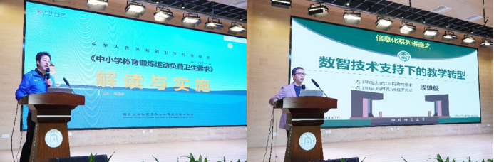 本次研讨活动现场展示了8节以数字化赋能的体育与健康教育现场课,成都师范学院教师教育学院院长周鑫燚教授及四川省教育科学研究院中小学体育教研员、成都市教科院体育教研员进行了现场点评。四川大学体育学院副院长韩海军教授、四川师范大学计算机科学学院主任周雄俊教授分别做了专题讲座,川大附小南区学校、成都市成华小学分别就学校智慧体育以及数字化赋能体育教育教学和课外体育锻炼的经验交流。