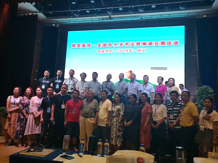 2019年7月22日至29日,由教育部、中国书法家协会、中国教育学会、教育书画协会等联合举办的“翰墨薪传.全国中小学书法教师第五期国家级培训”在贵州省遵义市湄潭县隆重举行。中国书法家协会副主席包俊宜,中国教育学会副秘书长张东艳等领导出席了启动仪式。该项目包括西南地区等共计600余人参加。四川省教育科学研究院艺体所冯恩旭所长带领四川省100位书法老师及市州教研员参加了此次培训活动。