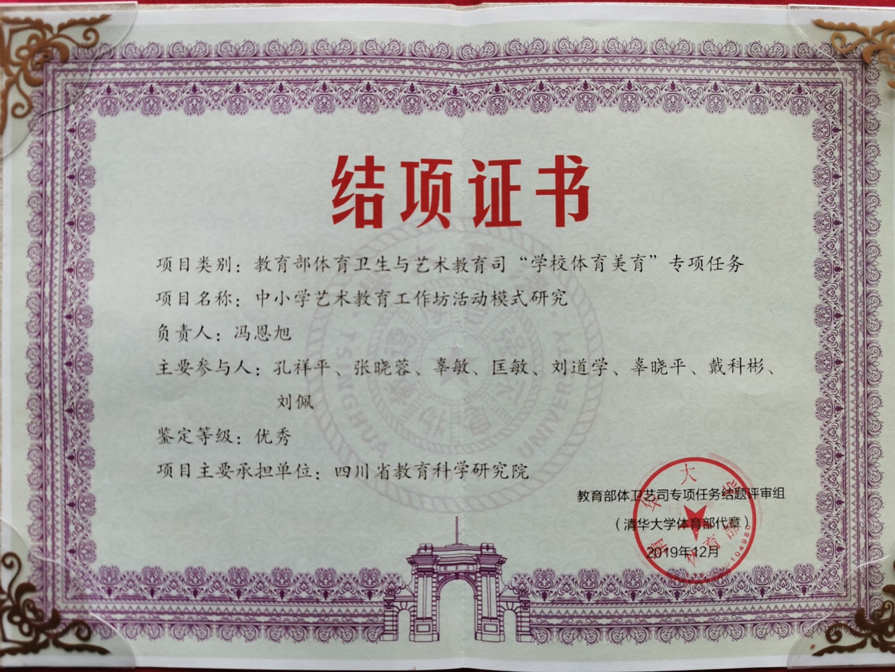 ——四川省教育科学研究院冯恩旭老师领研的教育部美育课题《中小学艺术教育工作坊活动模式的研究》荣获优秀奖