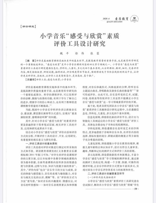 同时,课题组理论与实践结合,其中,课题的研究成果之一,由课题组成员魏平、徐伟、张蓉共同撰写的论文《小学音乐“感受与欣赏”素质评价工具设计研究》被中国人民大学书报资料中心全文转载至由中华人民共和国教育部主管、中国人民大学主办的《素质教育》2020年第6期。