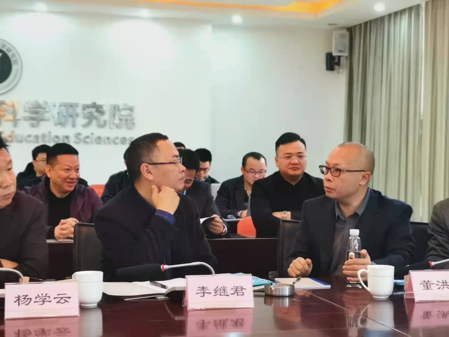 2020年11月16日,重庆市云阳县教育委员会副主任李继君、基础教育科副科长李柱国、教科所所长杨学云、教仪站站长周厚琼以及云阳县实验中学教师吴启雄一行5人到访四川省教育科学研究院,考察学习大数据精准课题研究及实践应用经验,并进行相关研讨。四川省教育科学研究院副院长董洪丹、高中所所长吴中林等有关同志参加座谈交流,座谈交流会由物理教研员宋怀彬主持。