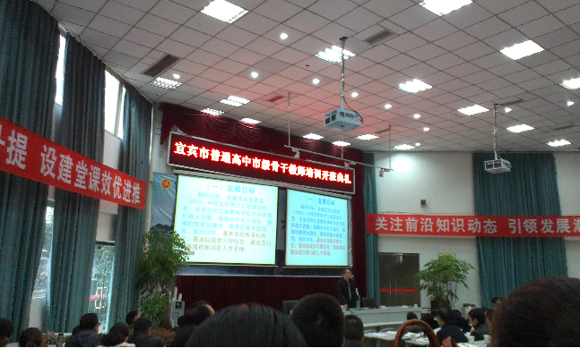 12月2日上午,在宜宾市商职校的报告厅,四川省高中骨干教师培训班迎来新的一天。来自宜宾市的各个学校的学员都满怀激情的参加培训。上午由四川省教育厅赖主任倾情的讲授《学生发展核心素养框架下的教、学、评》;下午在宜三中金沙厅里,本土的专家长宁中学的孙书记给大家讲解了《多媒体课件讲义和微课》。这两次讲课让大家认识了教师的真正定位和需要掌握的现代教育技术技能,受到了所有学员的一致好评和称赞。