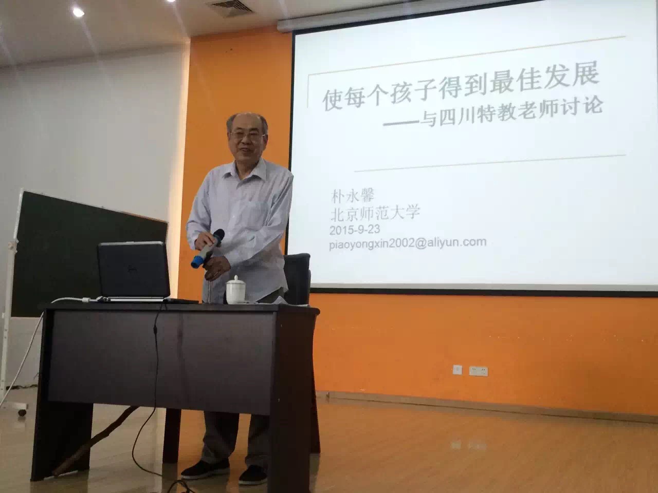 省级展评活动由专题学术讲座和课堂教学现场展评、研讨两大版块组成。中国特殊教育研究开创者之一,享受国务院“政府特殊津贴”的全国知名特殊教育专家,北京师范大学朴永馨教授。朴教授围绕“正确认识和对待有特殊教育需要的人”、“依法办特教”、“特殊教育学校培养目标与课程设置原则”等内容作了主题为《使每个孩子得到最佳发展—与四川特教老师讨论》的专题讲座;并对我省特教教师提出“继承、借鉴、创新,做专家型特殊教育教师”的专业发展要求。