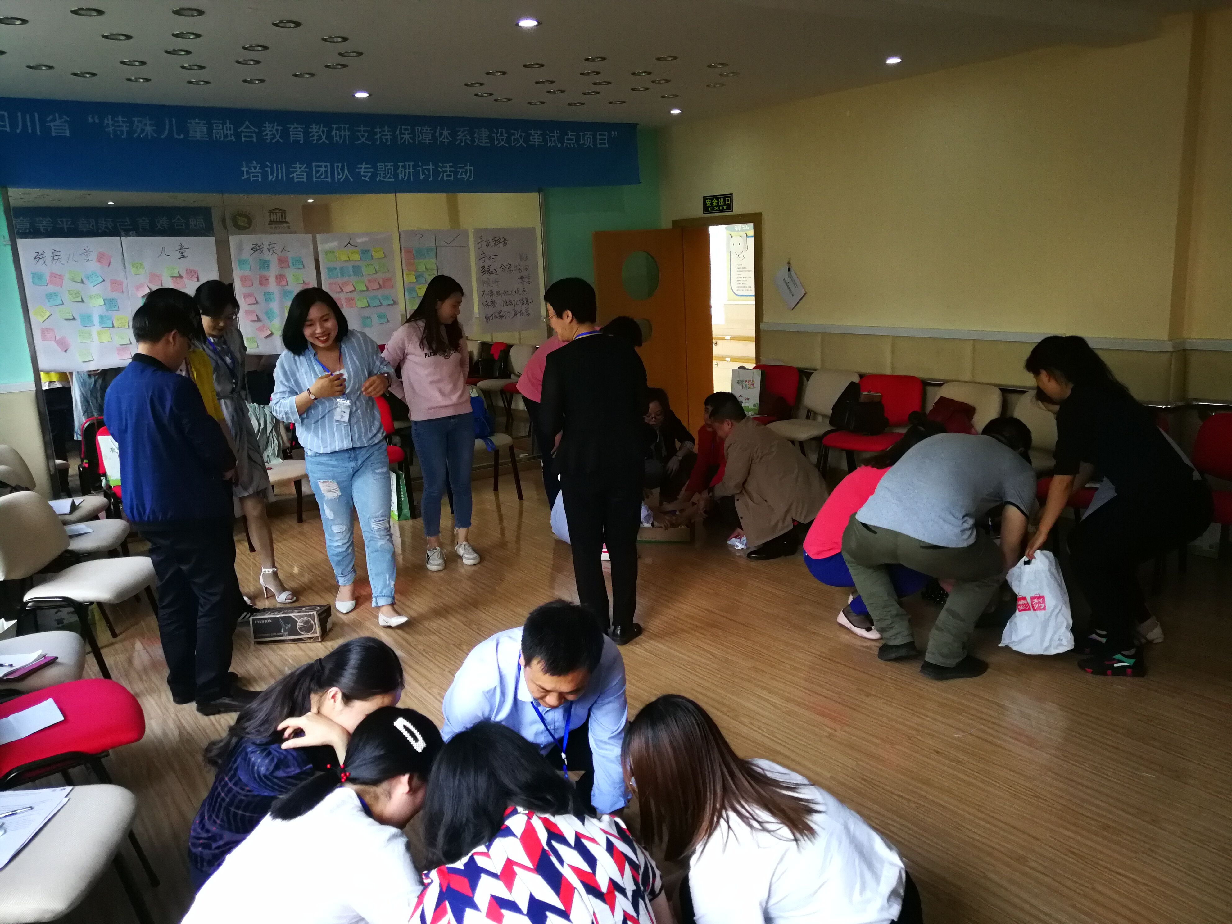 研讨活动在成都市成华区特殊教育学校举行。省级融合教育培训者团队全体成员在哈佛大学法学院残障项目培训师蔡聪(视力障碍)、中国精残协副主任兼副秘书长冯新引领下,围绕残障模式、残障定义、整合与融合的概念辨析、残障概念与权利、残障的传闻与真相、合理便利、融合教育资源、融合教育政策与支持等内容,采用团队辅导的形式,分小组进行讨论、发言、游戏、案例分析,从打破“不了解——隔离——害怕”的怪圈、到残障概念演变的三种模式(传统模式、医学模式、社会模式)、再到残障的新概念——“残障=身体损伤+障碍”、以及可接受与不可接受称呼的讨论,进一步明晰残障平等意识;从什么是合理便利、哪些资源可以争取成为融合教育支持的资源、讨论分享案例、行动计划等环节,进一步明确了融合教育实施办法与策略。