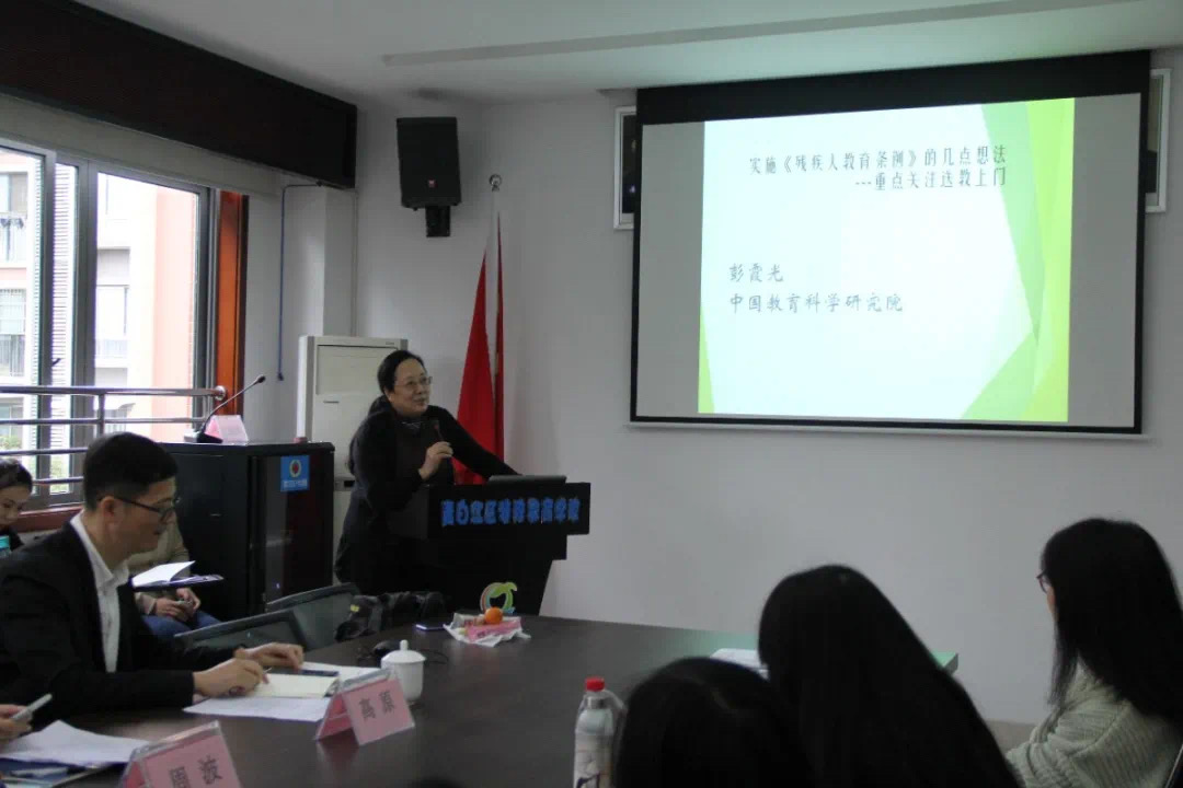 专题培训活动首先由全国知名特教专家、中国教科院彭霞光研究员就“《残疾人教育条例》实施背景下的送教上门工作政策与实施建议”做专题报告。彭霞光老师解读了《残疾人教育条例》的理念、制度和送教上门的相关规定,围绕“谁来送、送什么、怎么送?”三个现实问题为项目未来的实施方向和路径提出了建设性的意见和建议。四川省教科院黄汝倩老师就“送教上门多重障碍儿童教育教学方法”做了专题培训。活动还特别邀请了国家特殊教育改革实验区云南玉溪市特殊教育学校张国强校长介绍了云南玉溪送教上门的工作经验。