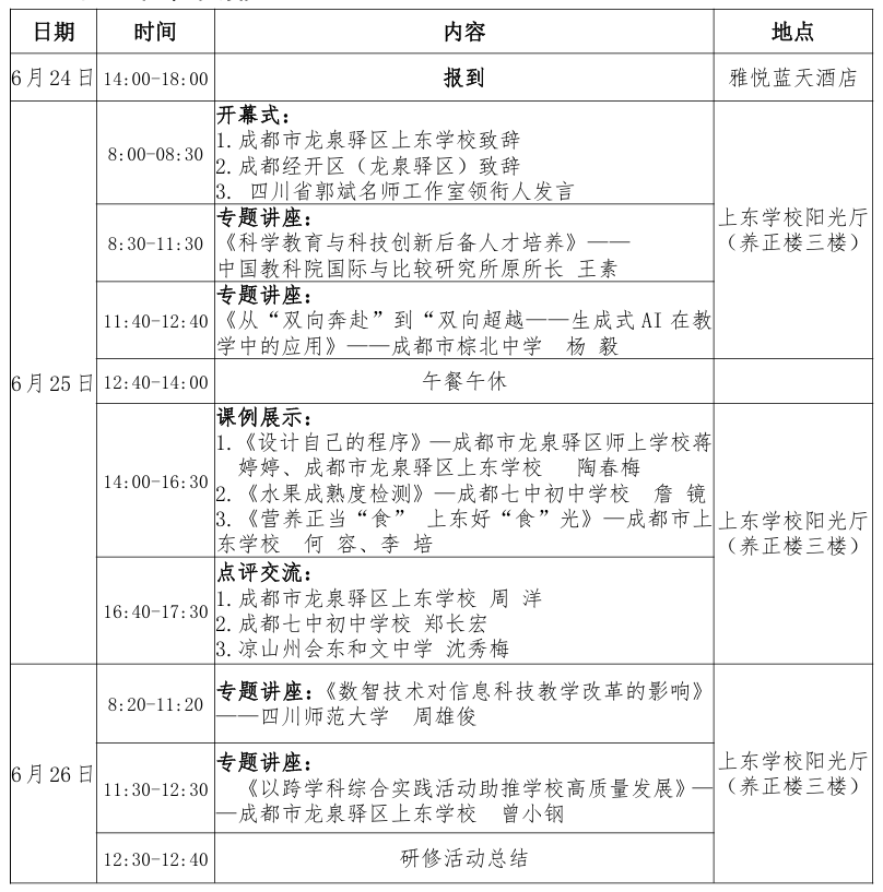 根据国务院《新一代人工智能发展规划》普及中小学人工智能教育的精神,为认真落实国家教育数字化战略行动决策部署,全面提升教师智能素养和实践能力,扎实推进中小学人工智能教育实践与应用,积极探索新课标背景下信息科技学科教学的路径和方式,四川省郭斌名师工作室结合自身榜单任务,决定组织开展人工智能支撑下的课程改革研修活动,现将有关事宜通知如下。