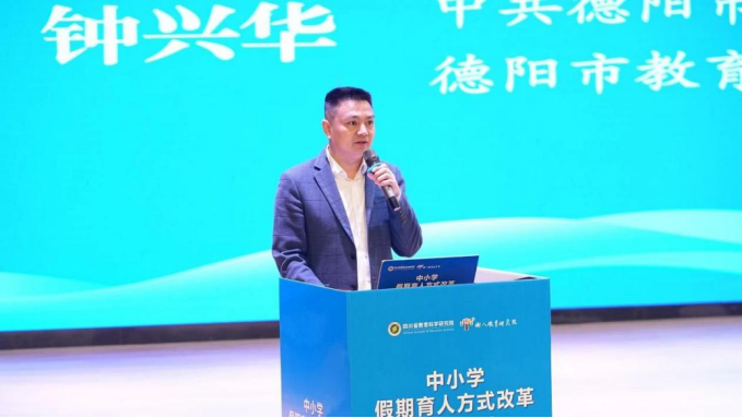 开幕式上,中共德阳市委教育工委委员、德阳市教育局党组成员、副局长钟兴华致辞,介绍了德阳在探索中小学假期育人方式改革的经验与成效。