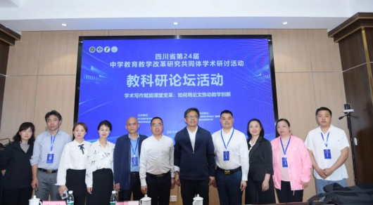 教科研论坛,聚焦“学术写作赋能课堂变革”这一话题,邻水县第四中学校、自贡市汇南实验学校、成都市棕北中学、四川省新津中学通过学术论文、课题研究报告写作典型案例,探讨学术研究在推动学校教育改革、赋能教师专业成长的价值与困境。华中师范大学人工智能教育学部教授付卫东、成都理工大学教授王玉琼作点评指导。付卫东教授以“中小学教师课题研究与成果转化:难点及应对策略”为题作专题讲座,系统解读课题研究中理论依据的确定、研究方法的选择、过程性资料的收集、成果转化与推广的方法,为教师开展课题探究指明了方向。
