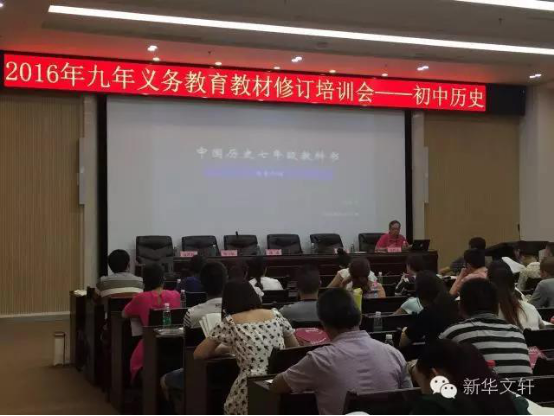2016年九年义务教育修订教材培训会于8月23日至8月26日在成都召开。该培训会由四川省教育科学研究所主办,新华文轩出版传媒股份有限公司承办。本次培训学科包括小学语文、初中语文、小学道德与法治、初中道德与法治、初中历史五个学科。培训对象包含各市(州)上述学科九年义务教育学科教研员和骨干教师,参会人员达1200余人。