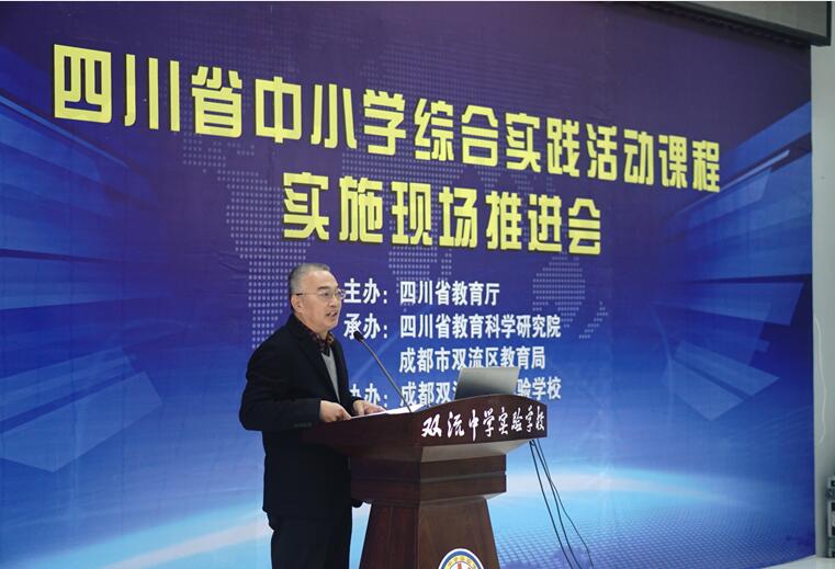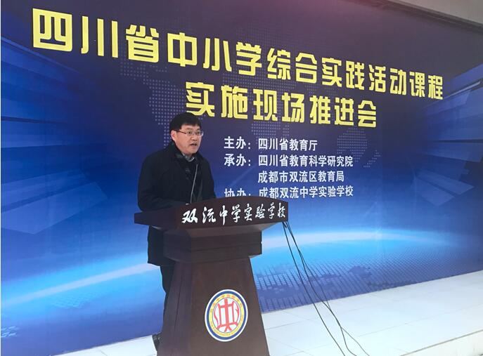 11月20日,全省中小学综合实践活动课程实施现场推进会在成都双流中学实验学校召开。全省各市州教育局分管领导;基础教育科(处)负责人;各市州教科所(院)长或分管领导;各市州综合实践活动课程教研员;学校校长代表共计150余人参加了会议。省委教育工委委员、省教育厅副厅长、党组成员崔昌宏出席会议并讲话。