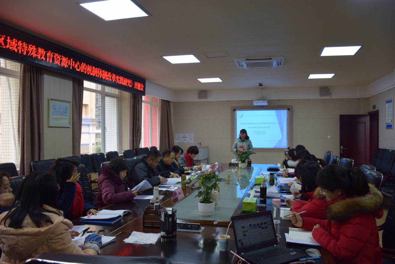 12月14日,成都市双流区特殊教育资源中心(特殊教育学校)申报的2018年度省级教育科研资助金项目重点课题《特校职能翻转为区域特殊教育资源中心的机制体制改革实践研究》开题会在双流区特殊教育资源中心会议室顺利召开。莅临开题会现场指导的专家有四川省教科院科研管理所所长王真东、乐山师范学院特殊教育学院副院长章永、成都市教科院教育改革发展所副所长陈宇燕、双流区研培中心理论室主任易恩及省特殊教育专家蔡明尚校长;参加开题会的还有该课题组主研教师及中心骨干教师。