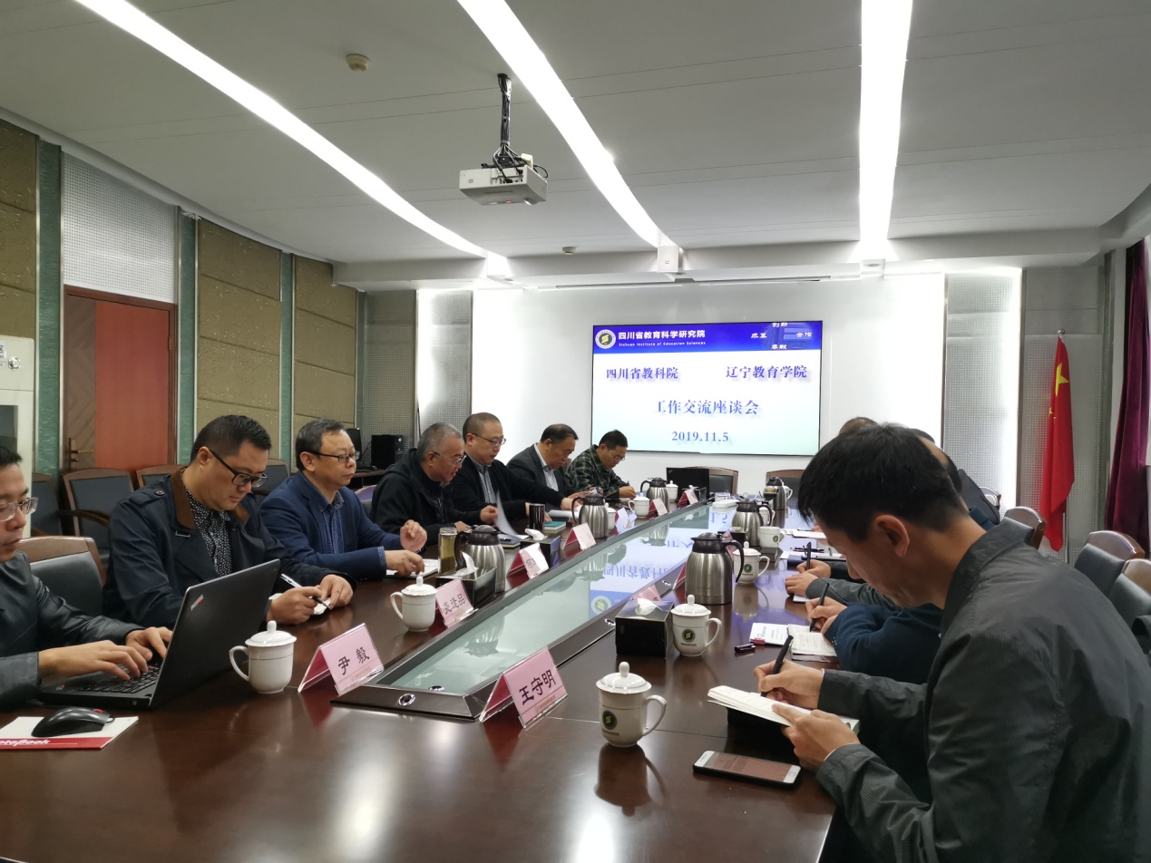 刘涛院长及相关职能部门负责人与辽宁教育学院代表团进行了座谈交流。首先,刘涛院长代表四川省教科院向到访的辽宁教育学院高书记一行表示热烈欢迎,并向对方介绍了我院的基本情况、转型发展以及当前的主要工作等。随后,辽宁教育学院高书记介绍了辽宁教育学院的概况以及重要工作内容。最后,双方职能部门围绕基础教育、职业教育成人教育、高等教育研究情况;基础教育课程、教学的研究与指导和考试命题的研究、指导与实施情况;基础教育监测评估理论、政策及指标体系的研发与应用情况等内容进行了深入交流。