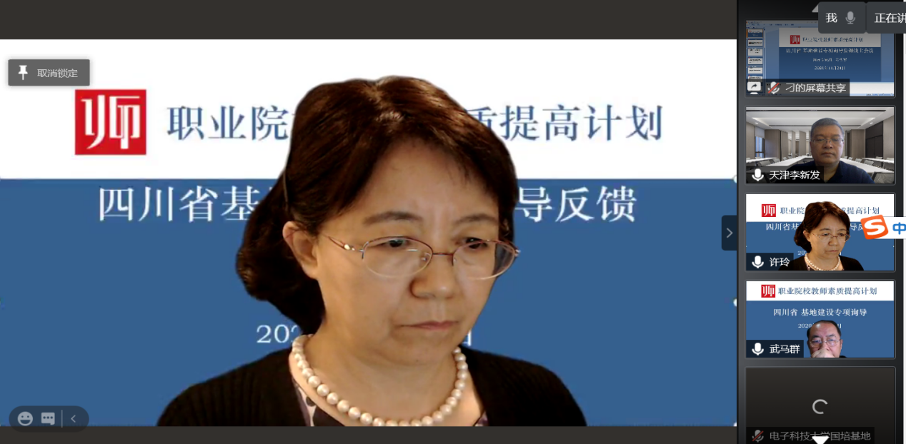 11月24日下午,教育部专家组对我省职业院校教师素质提高计划基地建设工作进行了专项询导。专项询导以在线方式举行,会议由专家组组长河北师范大学刁哲军教授主持。厅人事教师处处长寇昆仑、职教处副处长陈明政,省项目办、电子科技大学、四川农业大学、成都工业职业技术学院、四川长虹电器集团股份有限公司等国家级重点职教师资培训基地相关工作负责同志及管理人员参加询导会议。
