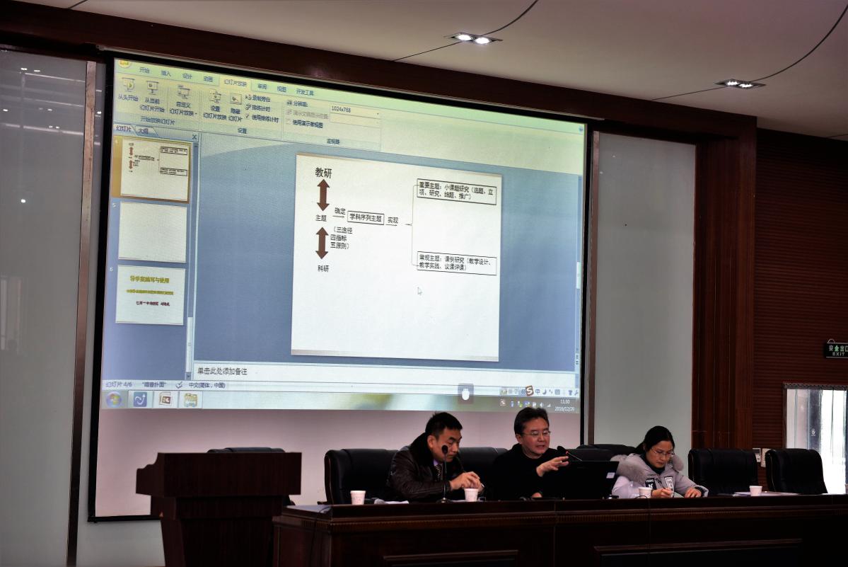 王主任认为这个课题的主要亮点在于:第一,它是一项结构改革,指向的是课堂结构的改革;第二,有两个关键点,就是主题价值的判断和课堂教学的评价量标;第三,有三组主题词,即“两全一用”“问题、主题、课题”和“课标、课例、课堂”。在该课题中我们有三个“学”,学它的思想,学这个课题对前置条件的分析,学课题成果的操作程序。最后,他指出,该课题还要关注以下几点:①要进一步厘清课题的内涵及其指向;②这是一项课堂结构的改革,要思考结构改革的三个因素;③要关注小课题研究和课例研究这些活动的三个要点;④应该有开放的视野,关注同类的、省内的课堂结构改革的研究。