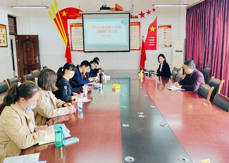 2018年度四川省教育科研重大课题《生态学视域下乡村教师小专题教研范式研究》于2022年4月7日在绵阳市游仙区召开了成果推广研讨会,游仙区教育和体育局课题组主研人员和子课题学校部分代表参加了会议。