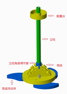 | 简要制作报告 | 本教具主要是通过PTC的Creo3.0设计软件设计并通过3D打印机打印出来。整个教具由底座、底座活动块、立柱以及配重台组成。 | ||||