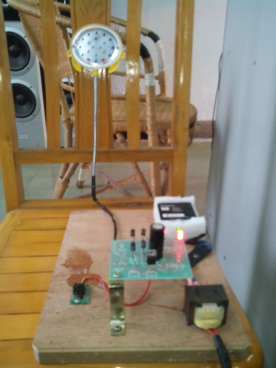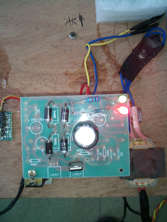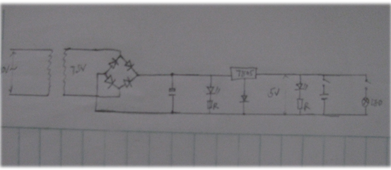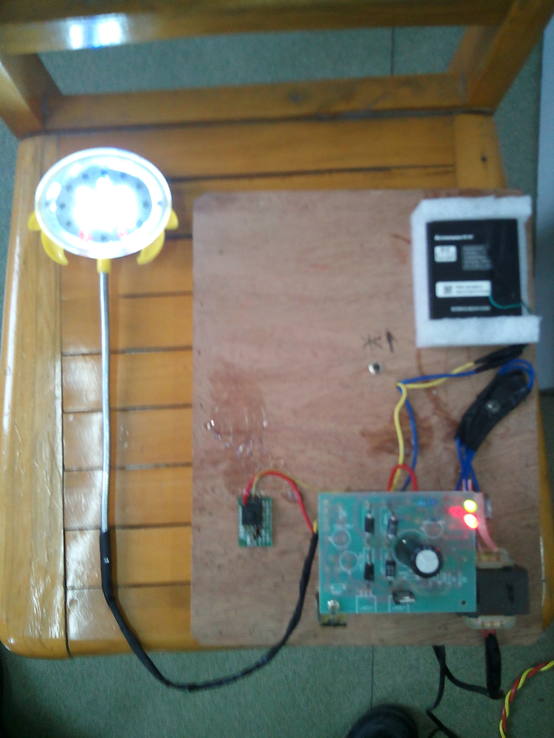 1、木质底板(30cmⅹ25cm) 2、发光系统独立,其他系统固定于底板之上 3、发光系统采用LED,支架为旧台灯弹性支架 4、开关系统采用按钮和拔动开关 5、整流稳压系统采用桥式整流,7805集成块稳压 6、变压系统采用硅片变压器(220V变7.5V) 7、储电系统采用旧手机电池 |