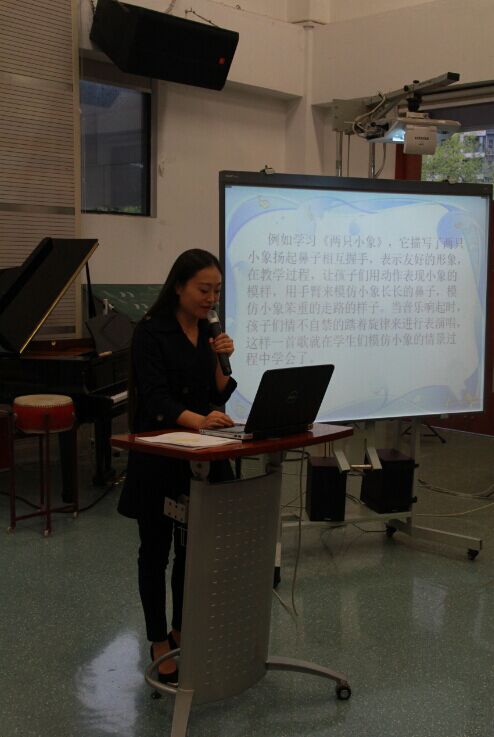 活动首先由来自新源学校的罗璇老师做了专题报告,就如何高效利用舞蹈专长服务于音乐课堂这个主题,给全区老师做了精彩的发言。