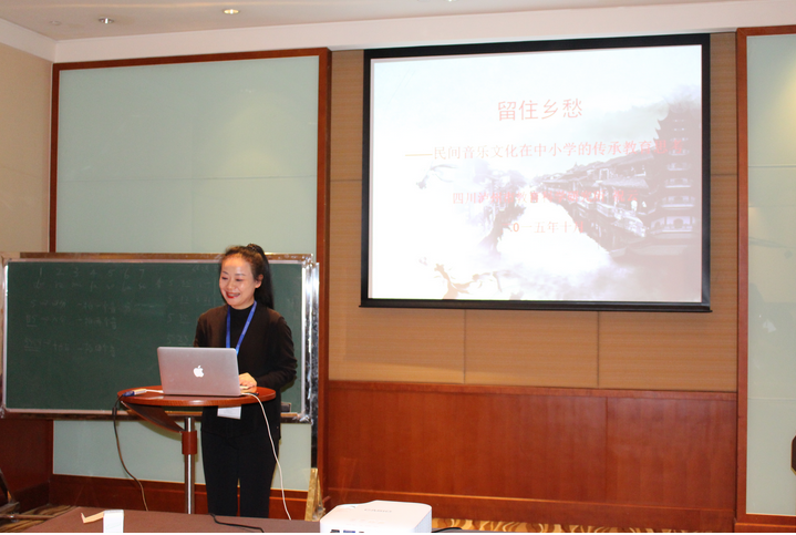 在此次大会上,我省共有19名老师经过层层筛选,代表四川站在了大会的讲台上,与全国音乐教育同行交流。这些老师中有来自我省各地市州的音乐教研员:成都市李萍、宜宾市黄丹、泸州市祝云等,也有像李丽、韩敏、周梦瑶等这些来自中小学校的一线教师,还有像唐小捷、郭丽欣、汤卢等来自高等院校的专家、教授。老师们经过精心准备,在大会上就音乐教学的各类问题分别以论文演讲、工作坊等多种形式与会嘉宾作了宣讲交流。无论是李萍老师的“国际化进程中传统戏曲文化与学校艺术教育的融合创新”,还是周梦瑶老师的“四川清音《赶花会》”工作坊;无论是冯玉霞老师的“中职学校班级合唱教学的有效策略研究”,还是黄丹老师的“论中小学音乐教师专业成长的音阶”,这些课题都贴近音乐教学现状,有效地反应出我省音乐教师和音乐教育工作者的工作能力和工作成效。