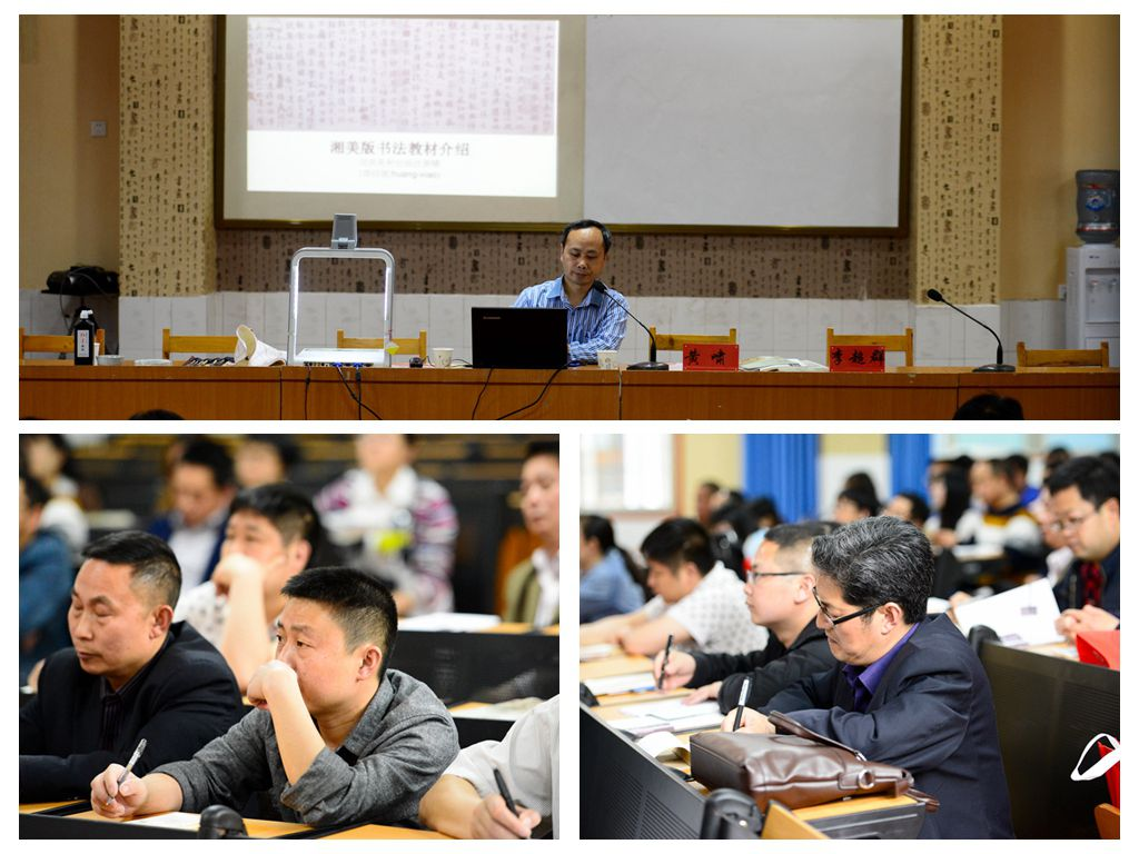 湖南美术出版社编审黄啸对小学书法教材的编写意图、编排体系、四年级教材内容做了详细的分析与解读,并与参训教师亲切互动,解答教学中存在的疑难问题,帮助书法教师科学的使用教材,为提高书法课堂教学效益起到了积极的推动作用。