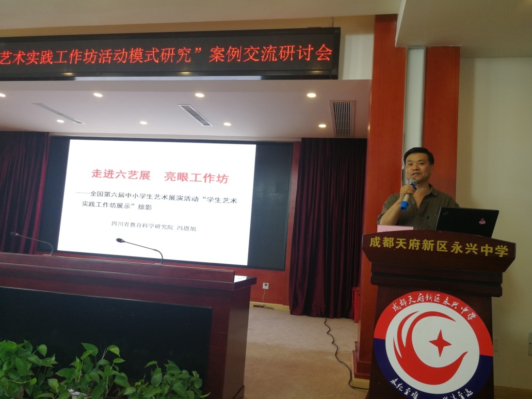 2019年7月8日至9日,由四川省教育科学研究院主办、成都市天府新区教育科学研究院承办,天府新区永兴中学协办的教育部美育课题“中小学艺术实践工作坊活动模式研究”优秀案例研讨会在成都天府新区隆重召开。四川省教育科学研究院艺体所冯恩旭所长等市州美术教研员、工作坊子课题负责人、美术教师代表共116人参加了研讨会。