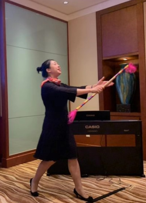 为给参会老师们更形象的演示,徐伟老师现场展示了“打连厢”,蒋英老师展示了“四川盘子”,得到了与会老师们的高度赞扬,纷纷表示,这种特色教研活动立足本土,主题鲜明,值得借鉴和推广。