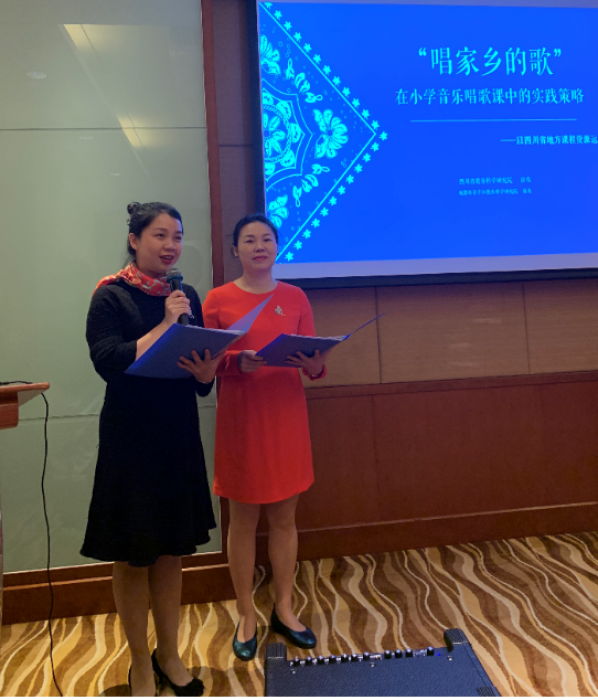 同时,在本届大会上徐伟还带领成都市青羊区教科院音乐教研员蒋英宣读了题为《 “唱家乡的歌”在小学音乐唱歌课中的实践策略——以四川省地方课程资源运用为例》的论文,得到了参会老师们的一致好评。