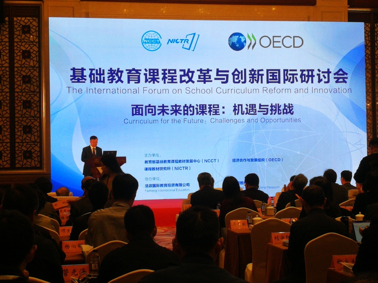 2019年10月19—21日,由教育部基础教育课程教材发展中心、课程教材研究所和经济合作与发展组织(OECD)主办的“基础教育课程改革与创新国际研讨会”在北京会议中心9号楼学术报告厅隆重召开。大会来自我国义务教育课程修订组,以及课程教材中心和课程教材研究所“基础教育综合课程改革实验区”、学科教研基地的200余位代表参加了会议。会议以“面向未来的课程:机遇与挑战”为主题,共同探讨面向未来的人才培养、课程设计、教学与评价改革。教育部郑富芝副部长出席该会并致辞。来自四川省教科院的全国普通高中音乐学科教研基地和普通高中美术学科教研基地代表牛琴和孔祥平两位教研员参加了该次会议。
