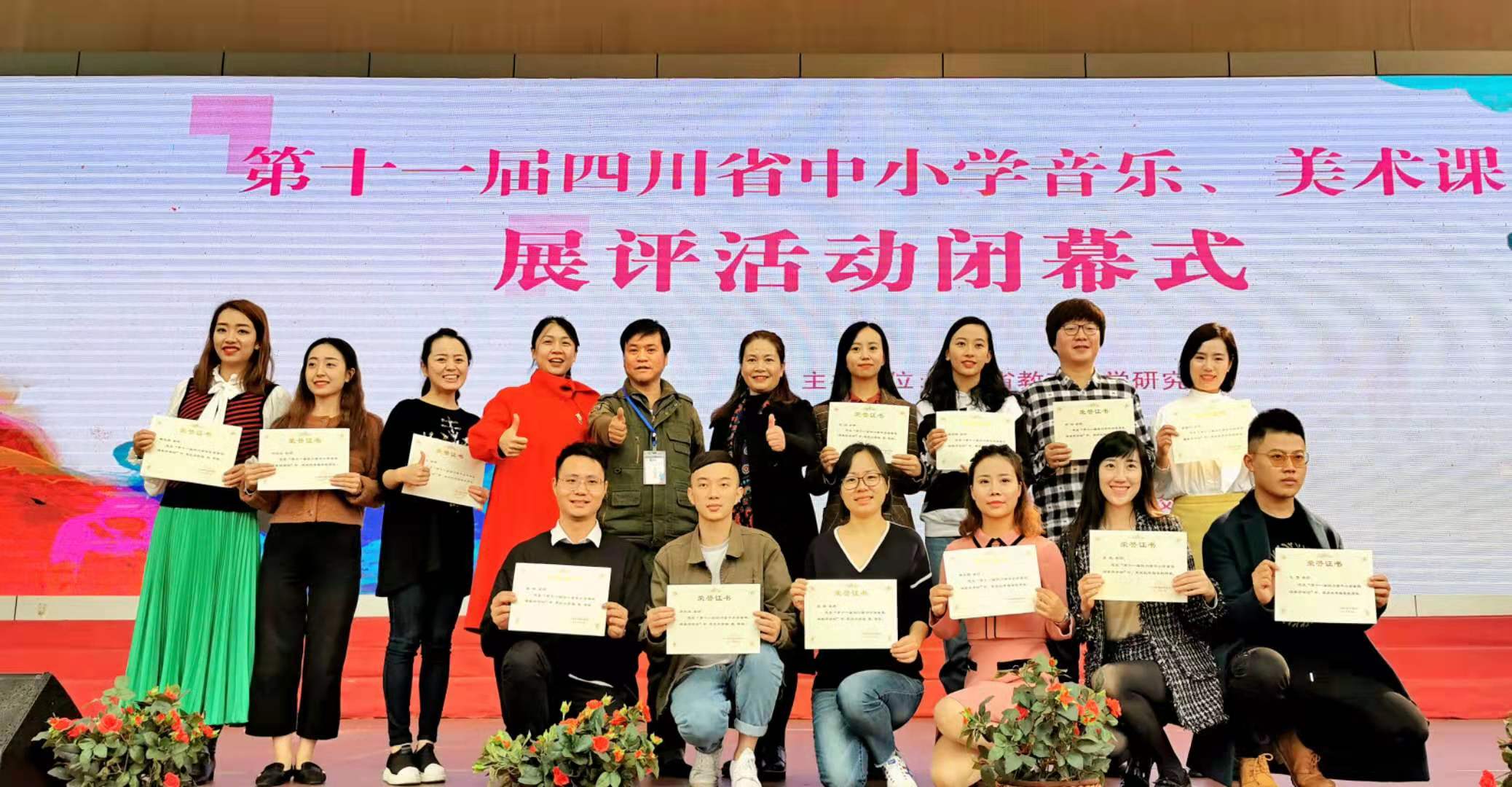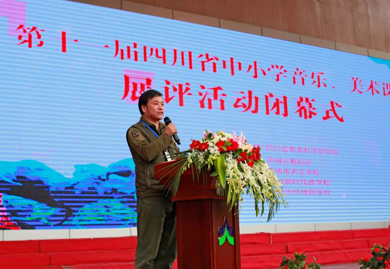 在活动闭幕式上,泸州市教育局何明英副局长致了答谢辞,四川省教育科学研究院艺体所所长冯恩旭对本次展评活动进行了全面的总结,来自川师大、成大的陶旭泉、魏平等专家教授分别从音乐和美术两个学科及高中及九义两个学段的展评课中进行了精彩的点评。大家一致认为,这届音乐美术展评课反应了一线老师们对艺术学科核心素养的认真落实,不同层次的体现了审美性、直观性、活动实践性、愉悦性等艺术课的特点,并把传承中华优秀文化放在显要位置。最后,活动在颁奖仪式后,余犹未尽中圆满结束。
