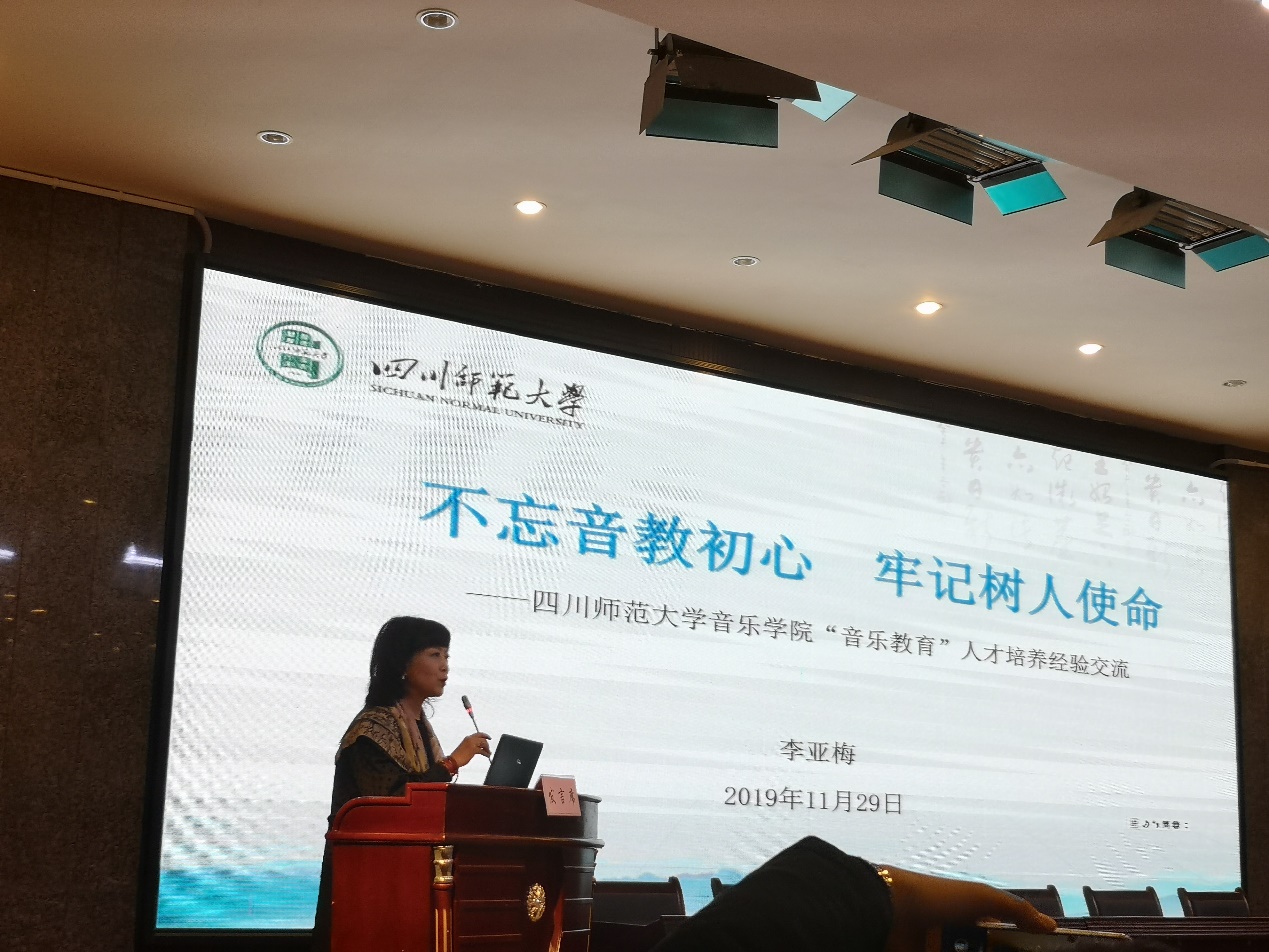 在此次研讨会上,来自四川音乐学院、四川师范大学、西华师范大学等8所高校的音乐学院院长做了主题发言。分别就高校音乐教育人才培养定位与目标、模式与途径、课程资源平台建设、实践教学基地建设、办学特色等方面进行交流。同时提出了高师教育应面向基础教育精准定位培养、构建音乐教师完备的综合素养结构;扎根巴蜀大地办音教,立足四川本土做美育。