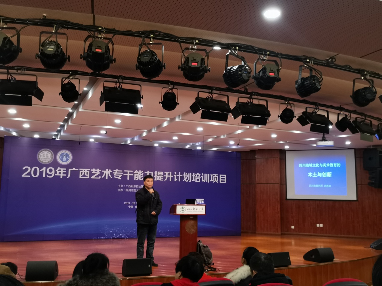 2019年12月6日,应广西壮族自治区教育厅之邀,教育部高中美术学科教研基地负责人、四川省教育科学研究院艺体所所长冯恩旭参加了“2019年广西艺术专干能力提升培训会”现场活动。