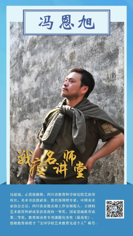 为了在抗疫期间,响应教育部“停课不停学”的号召,让居家的学生们也能通过网络学习,享受优秀资源。2020年3月17日,四川省教科院艺体所所长、美术书法教研员冯恩旭老师为这次省教育厅首批推出的6位针对疫情讲座的教育名师之一,通过四川云教电视课堂,向学生进行了关于艺术与疫情教育结合的专题讲座《“画”说疫情》,该讲座通过介绍反映西方七大瘟疫的名画和这次我省师生们以抗疫为主题创作的优秀书画作品,加强了学生们对疫情知识及防疫控疫,以及目前我国在抗疫方面取得的巨大成就的了解,让宅家学习的学生们更加懂得了艺术教育的魅力,更加珍惜来之不易的平安生活。该讲座还通过电信、移动、联通、广电、腾讯教育,以及四川省教育资源公共服务平台等媒体向全国播出,反映良好,点击率上亿。