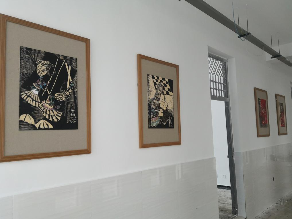 孩子们的美术作品美化校园教学楼的过道、走廊