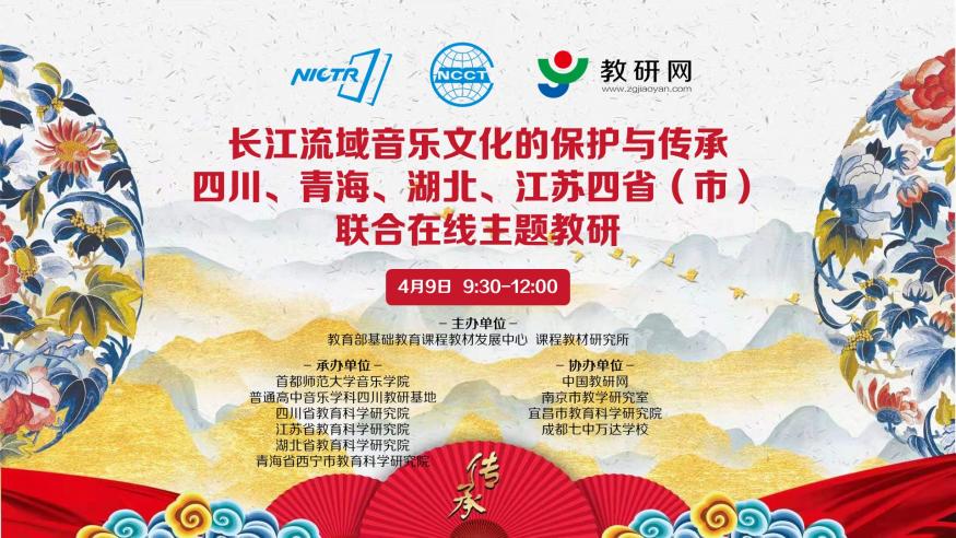 2021年4月9日在四川省教育科学研究院举行了由教育部基础教育课程教材发展中心普通高中音乐学科四川省教育科学研究院教研基地联合江苏、湖北、青海四省(市)共同举办的“长江流域音乐文化的保护与传承”主题网络研讨活动。