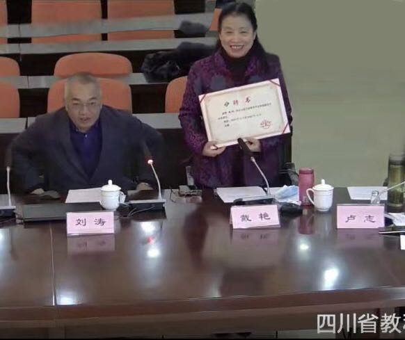 四川省教育学会常务副会长刘涛向戴艳理事长颁发了聘书