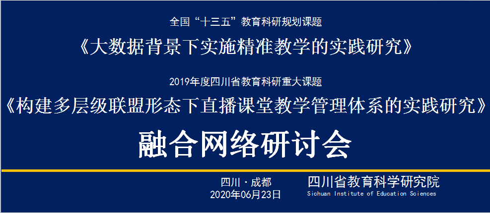 2020年6月23日上午,在四川省教育科学研究院“天府云学堂”会议室,由四川省教育科学研究院组织的全国“十三五”教育科研规划课题《大数据背景下实施精准教学的实践研究》及2019年度四川省教育科研重大课题《构建多层级联盟形态下直播课堂教学管理体系的实践研究》融合网络研讨会成功召开。