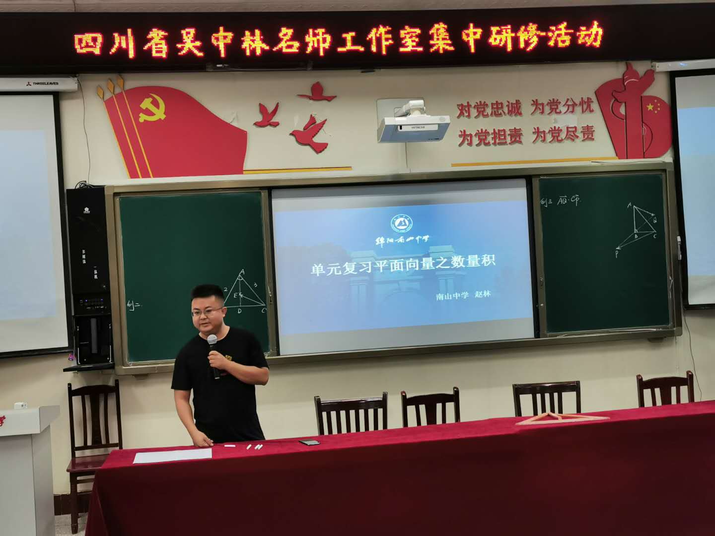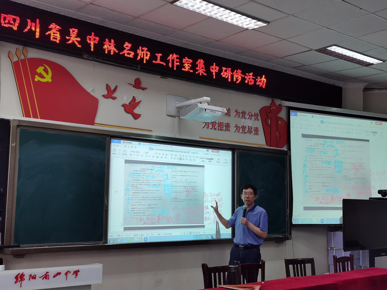 为了深入研究数学课堂教学,探寻单元复习教学的策略和路径,提高单元复习课的有效性,吴中林名师工作室于2020年7月13—14日在绵阳南山中学举行了集中研修活动。工作室领衔人吴中林及部分工作成员和学员参加研修,绵阳市教育科学研究所副所长罗小兵,绵阳市南山中学党委书记、校长徐勇以及南山中学约50名数学老师参加本次研究活动。活动由吴中林名师工作室成员任芳主持。