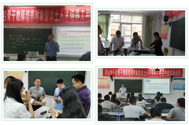 为落实中共中央、国务院关于打赢脱贫攻坚战的决策,切实扛起教育脱贫攻坚的历史重任,进一步加强凉山州高中数学教师队伍建设,四川省吴中林名师鼎兴工作室应凉山州教育和体育局邀请,吴中林、谢远净、张宇、李波波、郑达平、王贤华、黎方平、柴文斌、罗志英、谢维勇和张勇12位老师于2020年8月2日至2020年8月9日期间,承担了“凉山州千名骨干教师培养对象”高中数学教师培训工作,就教师教学中的经验和研究成果与参培老师进行交流分享。